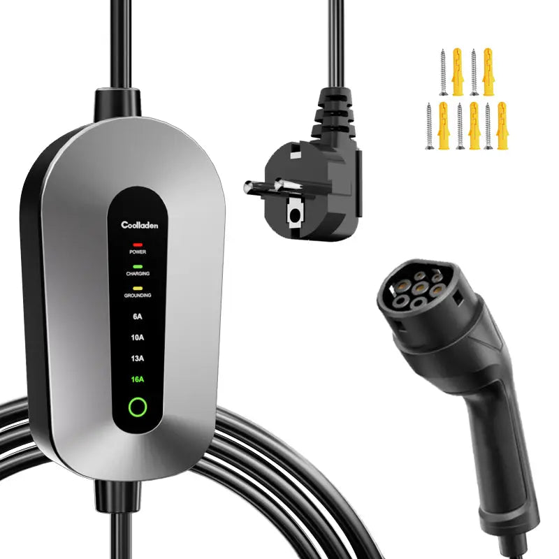Coolladen Electric Car Charger, Type 2 Charging Cable Schuko 3.68kW [1-phase, 4m/6m/11m, 6-16A], EV Charger for 3008/508, C5X, DS7, GLA, Q3, X3, ZOE, ID.3, ID.4, and Other PHEV/EV